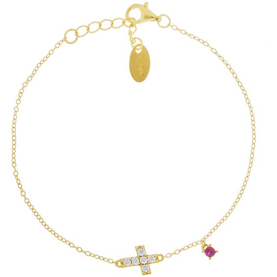 Bracciale da donna di Amen della collezione Croci. Gioiello in argento 925 con placcatura in oro e zirconi bianchi e rossi. Lunghezza: 16 + 3 cm.