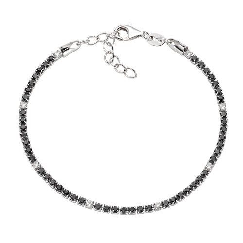 Bracciale in Argento 925 zirconi bianchi e neri - Rodio - Lunghezza 16 + 3 cm