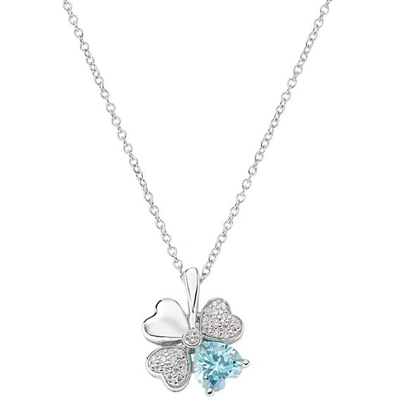 Collana da donna di Amen della collezione Quadricuore. Gioiello in argento 925 con placcatura in rodio e zirconi bianchi e acqua marina