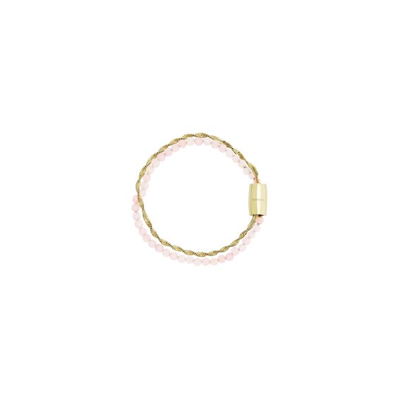 Magnetica System è la collezione di gioielli che, grazie ai suoi diversi elementi e alle chiusure magnetiche, può essere modificata e assumere forme e stili sempre diversi. Il bracciale Gliese abbina una sottile catena ritorta in acciaio lucido color oro a un filo di pietre naturali (agata rosa). Può essere indossato da solo o abbinato ad ogni altro elemento della collezione, per creare nuove collane di diverse lunghezze.
