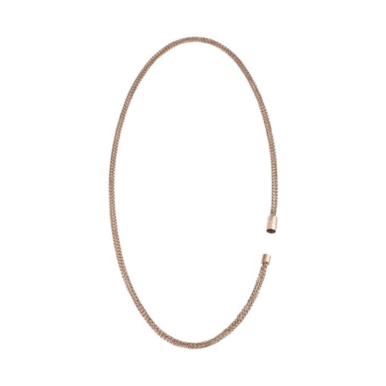 Magnetica System è la collezione di gioielli che, grazie ai suoi diversi elementi e alle chiusure magnetiche, può essere modificata e assumere forme e stili sempre diversi. La collana lunga Mirage è caratterizzato da una leggera catena intrecciata in acciaio lucido IP rose. Può essere indossata da sola o abbinata ad ogni altro elemento della collezione, per adottare stili sempre diversi.