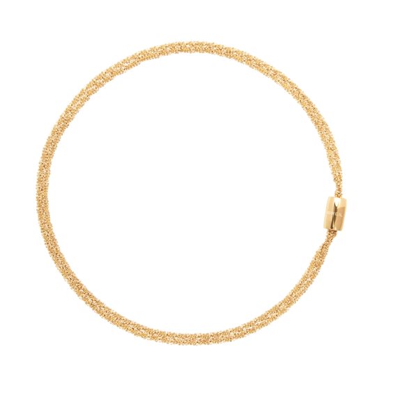 Magnetica System è la collezione di gioielli che, grazie ai suoi diversi elementi e alle chiusure magnetiche, può essere modificata e assumere forme e stili sempre diversi. Il girocollo Desert Rose abbina due catene a margherita in acciaio IP gold lucido. Può essere indossato da solo o abbinato ad ogni altro elemento della collezione, per creare nuove collane di diverse lunghezze.