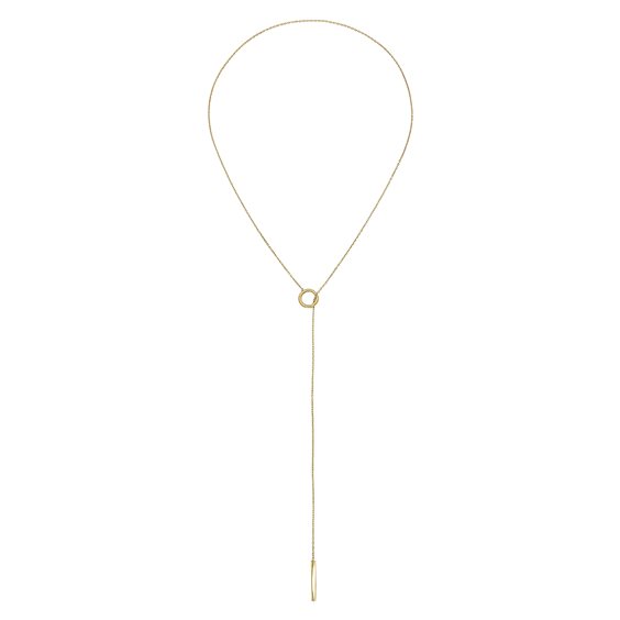 La collana da donna Flow ha una costruzione elegante e originale, che permette un indosso moderno e super cool. La raffinata e sottile catena in acciaio color oro termina da un lato con un pendente dal design originale dalla finitura bilux che scorre attraverso un cerchietto posto all'altra estremità e determina la lunghezza del gioiello e la tipologia di indosso. Un tocco di eleganza discreta che illumina ogni look.