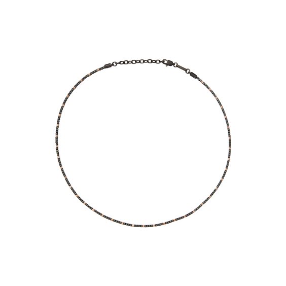 La collana B Rocks è realizzata con piccoli elementi sfaccettati in acciaio color gun e oro rosa che si alternanto all'ematite, una pietra che viene utilizzata per riequilibrare le energie del corpo e stimolante per la mente. Portare con voi un’ematite vi aiuterà a migliorare la vostra capacità di tenere a mente le cose. La chiusura regolabile permette di modificare facilmente la misura della collana.