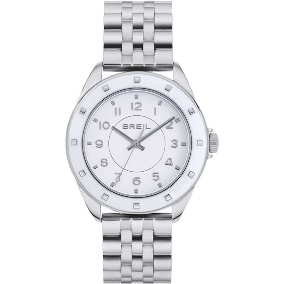 Orologio Solo Tempo Da Donna Di Breil Della Collezione Hyper. Orologio Solo Tempo A Tre Lancette Con Cassa Di 36 Mm Realizzata In Acciaio Lucido. Orologio Con Lunetta In Acciaio Laccato Bianco, Quadrante Bianco Lucido, Indici: Numeri Arabi Argentati E Sfere Argentate. Orologio Con Bracciale A Cinque Maglie In Acciaio Con Finitura Bilux E Chiusura Con Pulsanti. Il Vetro È Minerale. Il Movimento È Tmi Vj21 Al Quarzo. La Resistenza All'Acqua È Di 5 Atm. La Referenza E' Tw1951.