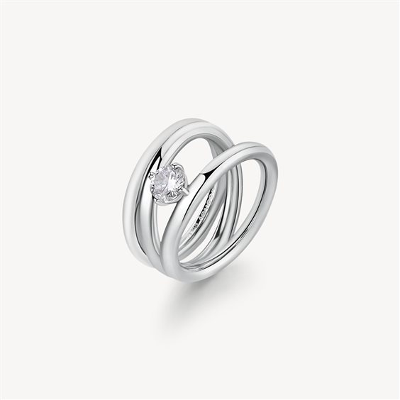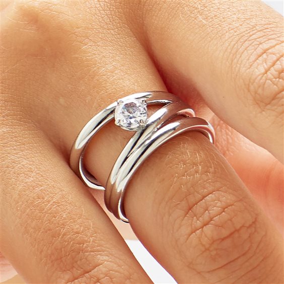 Anello a fascia in acciaio 316L e cubic zirconia.