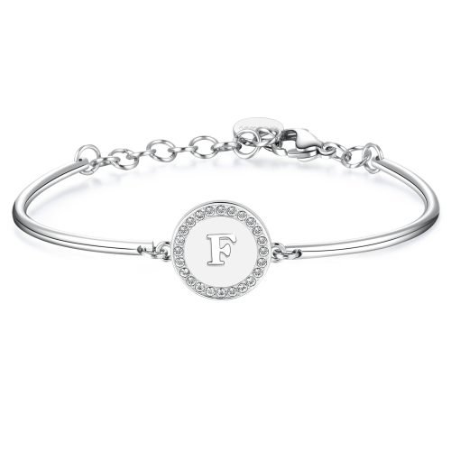 RAZIONALITÀ, RESPONSABILITÀ, DEVOZIONE CHI HA COME INIZIALE DEL SUO NOME LA LETTERA F È TENDENZIALMENTE DEVOTA ALLA FAMIGLIA E RIESCE A DOMINARE I PROPRI IMPULSI ED ISTINTI. SOGNATRICE, UN PÒ PIGRA, CHE SI SENTE APPAGATA SE RICEVE E DÀ PROTEZIONE. AL CENTRO DELLA SUA VITA PONE LE PERSONE CARE CHE GLI POSSONO CHIEDERE QUALSIASI SACRIFICIO.LOGICA E RAZIONALE, EQUILIBRATA E PADRONA DI SÈ, HA UN’ACUTA INTELLIGENZA E BUONE CAPACITÀ DI CONCRETIZZARE LE PROPRIE IDEE. BRACCIALE IN ACCIAIO 316L E CRISTALLI SWAROVSKI® CRYSTAL CON PIASTRINA INCISA.