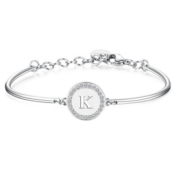 LETTERA K: AFFERMAZIONE, AMORE, AUDACIA Chi ha come iniziale del suo nome la lettera K ha voglia di affermarsi e di riuscire. È una persona con improvvise ispirazioni che si dedica totalmente alle cose in cui crede. Ha una grande capacità di donare amore ed è molto audace. Bracciale in acciaio 316L e cristalli swarovski® Crystal