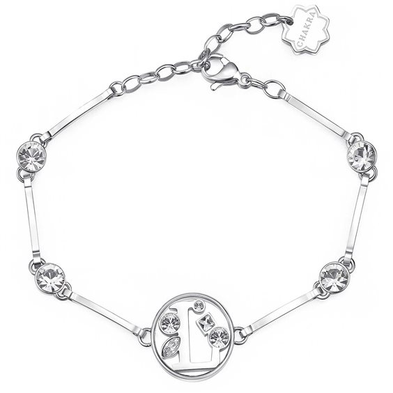 Bracciale Da Donna Di Brosway Della Collezione Chakra. Bracciale Realizzato In Acciaio Con Cristalli. Dettaglio: Lettera L, Significato: Capacità, Comunicazione, Libertà. Lunghezza: 185 Mm. La Referenza È Bhkb060