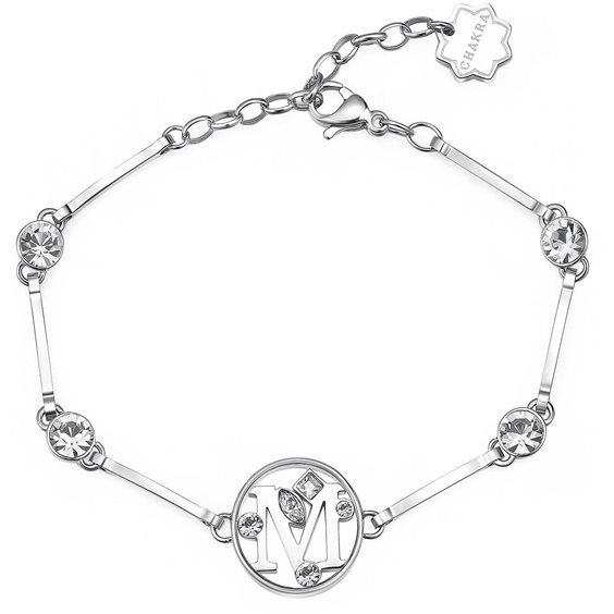 Bracciale Da Donna Di Brosway Della Collezione Chakra. Bracciale Realizzato In Acciaio Con Cristalli. Dettaglio: Lettera M, Significato: Ottimismo, Amore, Adattabilità. Lunghezza: 185 Mm. La Referenza È Bhkb061