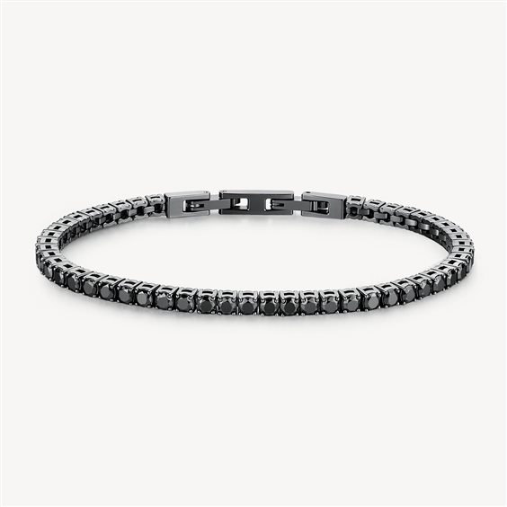 Bracciale tennis da 20 cm di lunghezza, da uomo in stile trendy, del brand Brosway, collezione Avantgarde. Il bracciale è fornito nella confezione originale, completo di garanzia originale. È realizzato in acciaio, ip nero con chiusura a incastro, con zircone colore nero. La referenza del prodotto è BVD34.