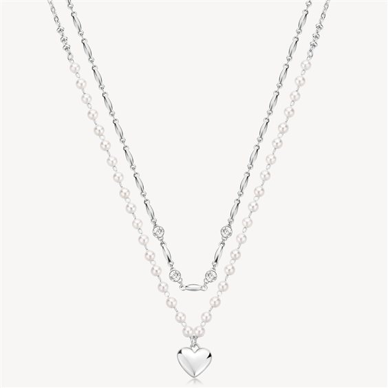 AMORE, ISTINTO, SOGNO Segui il tuo cuore e ne conoscerai il valore. Il mondo diventerà affascinante e le scoperte continue, anche nelle situazioni più ordinarie. Scegli di essere qualunque cosa tu voglia. Collana girocollo doppio filo in acciaio 316L e perle di conchiglia, con pendente a forma di cuore e cristalli.
