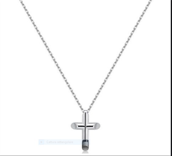 Collana uomo con croce passante nella finitura lucida e satinata. Lunghezza regolabile da cm 48 a cm. 45.
