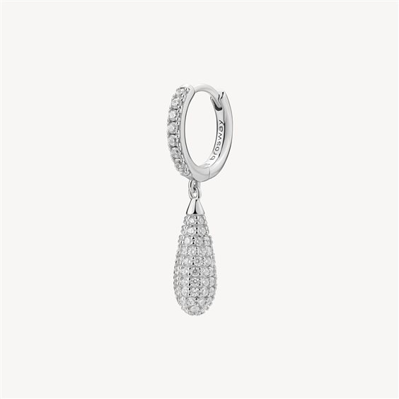 Orecchino singolo a cerchio in argento rodiato 925‰ e pendente con cubic zirconia.