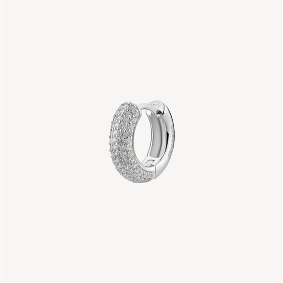 Orecchino singolo a cerchio in argento rodiato 925‰ con cubic zirconia.
