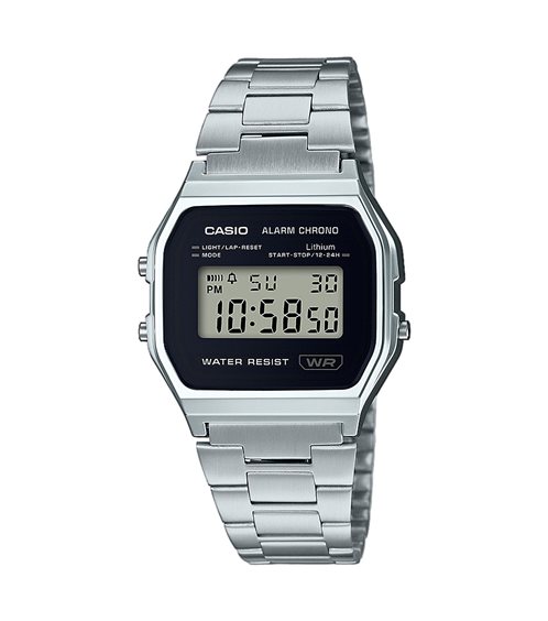 L'orologio da polso A158WA-1 color argento è dotato di lancette e indici con ampie aree fluorescenti per una facile leggibilità e di un'affidabile corona a vite. L'orologio digitale per uomo e donna ha anche una durata della batteria di 3 anni con CR2016. Grazie alla lunga durata della batteria e alle prestazioni affidabili, questo orologio da polso CASIO è perfetto per chi cerca un orologio elegante e multifunzionale. Funzioni: cronometro, promemoria sonoro, tempo e data, luce led verde