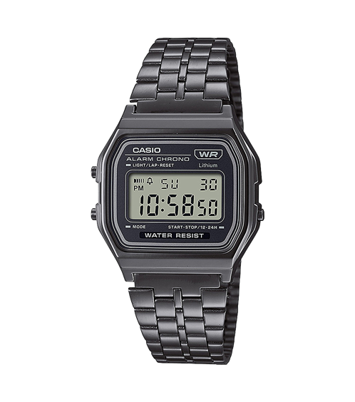 • Cronometro da centesimi di secondo • Luce LED • Cinturino in acciaio inossidabile color antracite con finitura lucida • Impermeabile • Quadrante squadrato - finitura a specchio