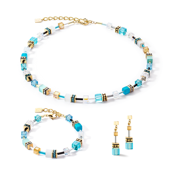 Per qualsiasi look. Collana GeoCUBE® Iconic oro-turchese Per qualsiasi occasione. Collana della collezione GeoCUBE® fatta a mano in raggiante turchese. Misura collana 42 cm + 6 cm. MATERIALE: Occhio di tigre sintetico Cristalli Swarovski® Polaris Rondella strass Vetro Acciaio inox oro LUNGHEZZA: 42 cm + 6 cm catenella di prolunga Chiusura a moschettone acciaio inox oro