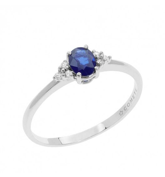 Anello in Oro 750‰. Diamanti bianchi P.Ct.4 Col. G Purezza SI. Zaffiro blu ovale 4x5 Ct.0,45