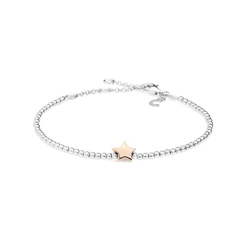 Bracciale a sfere in argento rodiato ed elemento a forma di stella placcato oro rosa.