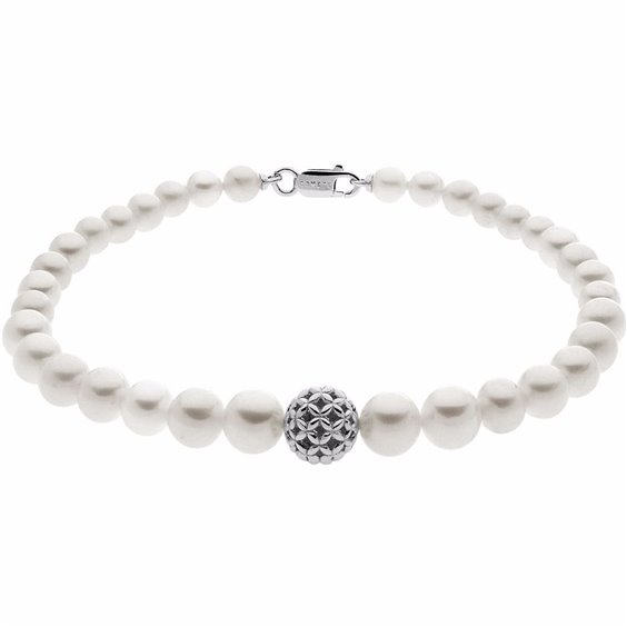 BRACCIALE DI PERLE COLTIVATE IN ACQUA DOLCE CON PALLINA TRAFORATA E CHIUSURA IN ORO BIANCO 18KT