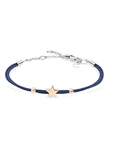 Bracciale con cordino blu, chiusura in argento rodiato ed elementi in argento placcato oro a forma di stella.