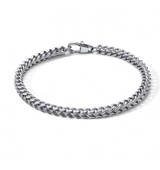 Bracciale da uomo realizzato in acciaio anallergico con finitura lucida. Misura regolabile; chiusura a moschettone.