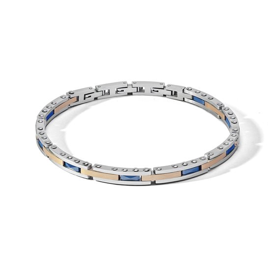 Bracciale in acciaio lucido con inserti in PVD rosè e ceramica blu