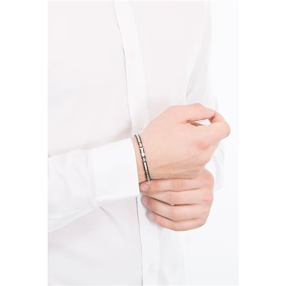 Bracciale in Acciaio, Lucido e satinato, trattamento in PVD nero, Zircone nero