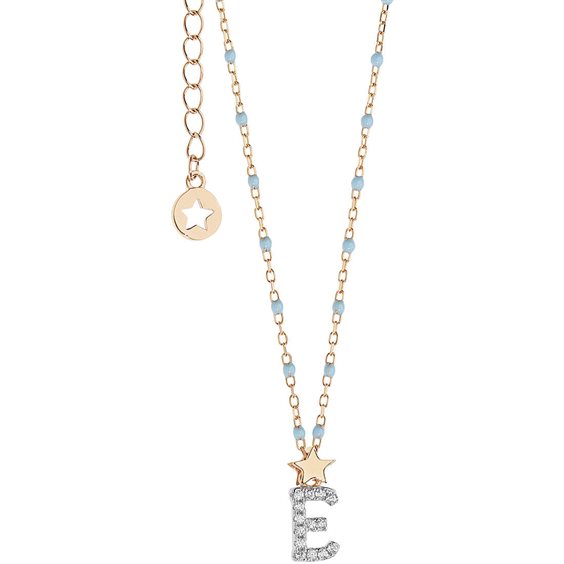 Girocollo in Argento 925% con trattamento di doratura rosè e smalto azzurro, zirconi bianchi