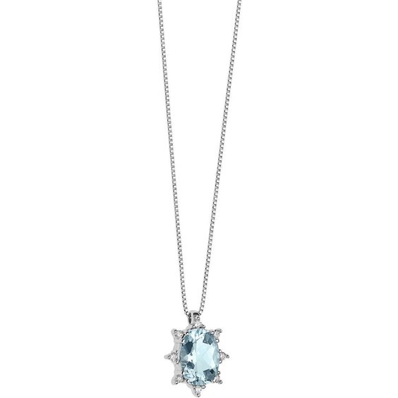 collana in oro bianco con pendente con Acquamarina di ct. 0.70 e brillanti autentici di ct. 0.04