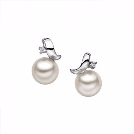 Orecchini in oro bianco 18kt con perla coltivata tonda diametro 77.5mm, e diamanti 0.02ct, colore G, purezza Si1