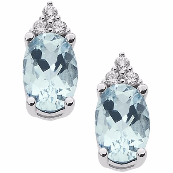 Orecchini in oro bianco 18kt con acquamarine ovale (totale 0,80ct) e diamanti a taglio brillante (totale 0.04ct)