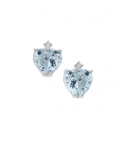 Orecchini Da Donna Di Comete Della Collezione Azzurra Prestige. Orecchini In Oro Bianco 750% E Diamanti P. Ct. 1,5 Col. G Purezza Si. Acquamarina a forma di Cuore di 6 mm. Ct. 0,90.