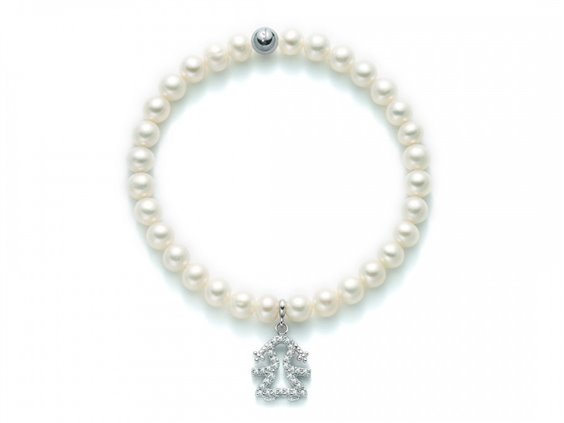 BRACCIALE DI PERLE COLTIVATE IN ACQUA DOLCE CON ELASTICO. ELEMENTO CENTRALE PENDENTE IN ARGENTO CON ZIRCONI.