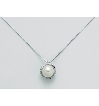 collanina veneziana in oro bianco 750/.. con una perla di acqua dolce mm 8 e 3 diamanti GSI per un totale di 2,13 punti di carato
