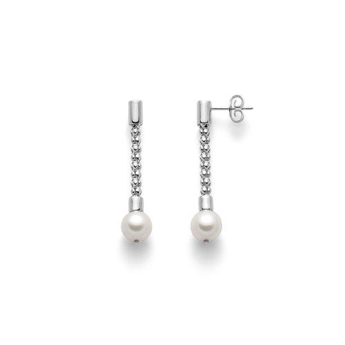 Orecchini donna , argento 925% rodiato , maglia modellofope , pendente lunghezza cm 3.5 , perle bianche coltivate in acqua dolce , mm 8-8.5. Immagine indicativa , la confezione può variare di forma e colore , scatola garanzia originali.