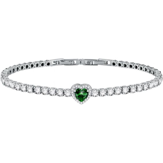 Bracciale tipo tennis con cuore verde centrale, e maglia da poter togliere per accorciare.