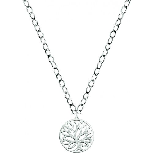 Collana donna , acciaio 316 L , girocollo maglia rollò , lunghezza cm 45 regolabile , pendente diametro cm 3 , zirconi bianchi incastonati.