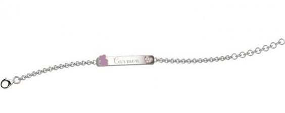 Bracciale in argento con targhetta centrale e orsetto smaltato da una parte e cuoricino di zirconi dall'altra.