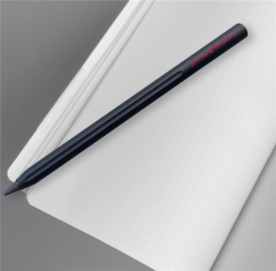 Matita dal corpo in alluminio anodizzato nero opaco dotata di puntale in grafite sostituibile. Pininfarina SMART è il nuovo gioiello nato dal genio creativo del team Pininfarina. Ergonomia e design minimale rendono SMART una matita every day use" ideale per scrivere o semplicemente per trasferire i tuoi pensieri su carta. Il corpo interamente ricavato da alluminio microfresato è dotato della rivoluzionaria punta scrivente in Grafeex, un materiale innovativo, ottenuto attraverso un rivoluzionario processo di sinterizzazione di singole particelle di grafite, che rivoluziona il concetto di matita. La punta in GrafeeX, garantisce infatti una durata superiore a quella di una normale matita e può essere sostituita con un semplice gesto.
