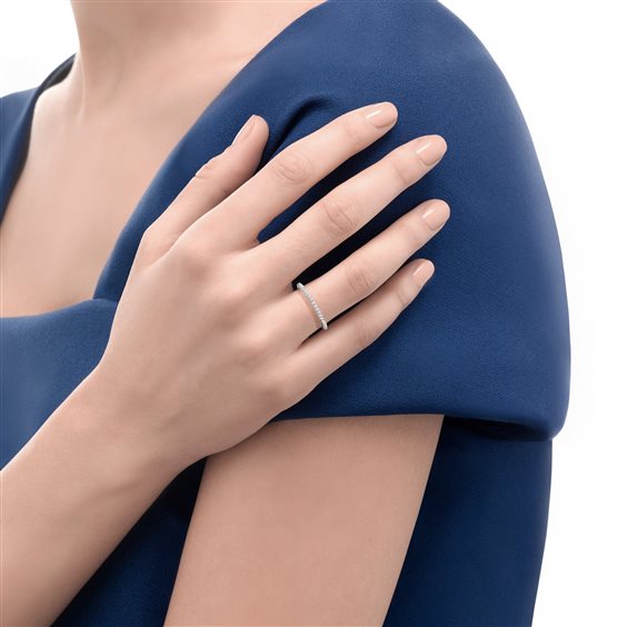 Bracciale tennis con catenella in oro bianco e diamanti.