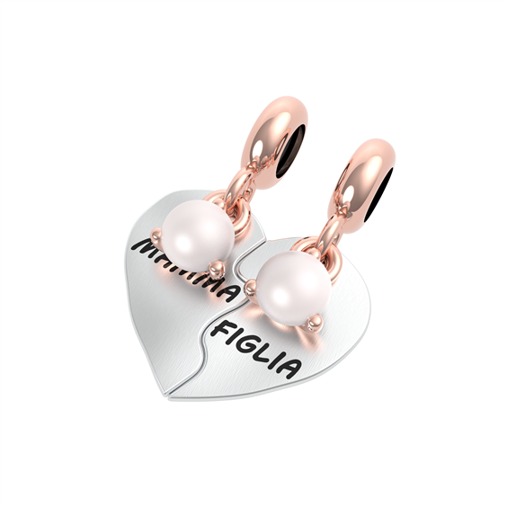Ciondolo RERUM se utilizzato senza base bracciale RERUM aggiungere chiusura universale ref. 26005 Mamma - Figlia Set di 2 charms - Mini Ref. 25085M Argento 925 Perla Naturale