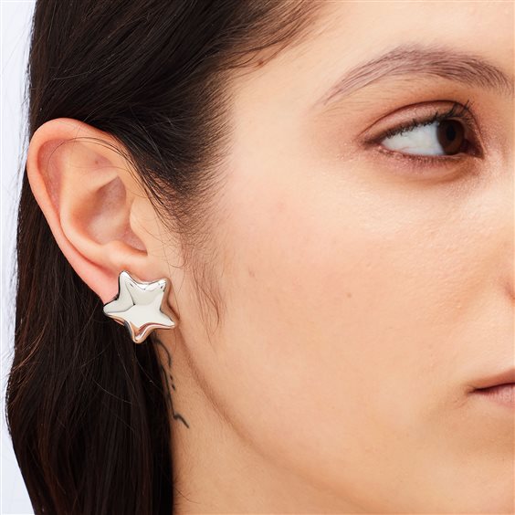 Orecchini STELLAR Orecchini a lobo a forma di stella in acciaio 316L. Metalli: Acciaio Finiture: nessuna Simboli: Stella Misura orecchini: 20mm Collezione: STELLAR
