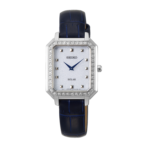 ELEMENTI SWAROSKY SUL QUADRANTE. SFONDO GLITTERATO COLOR ARGENTO. CASSA RETTANGOLARE 24X28 MM.