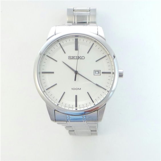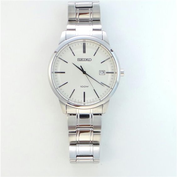 orologio classico acciaio cassa mm.42 quadrante colore avorio vetro hardlex bombato, tripla chiusura pieghevole con pulsanti a rilascio rapido W.R. 100 M