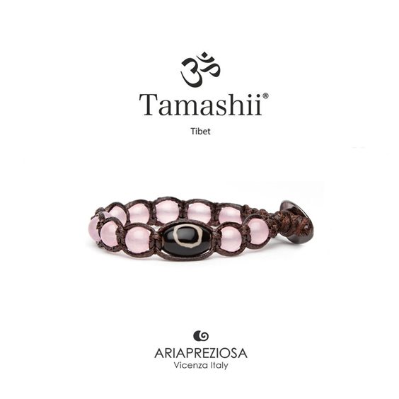 Tamashii Shonu PROTEZIONE con 11 pietre di giada rosa, la nuova collezione dedicata alle nuove generazioni. La caratteristica predominante è la pietra GZI in onice con raffigurati disegni e figure simboliche. Ogni simbolo corrisponde ad una forza di supporto ai Tantra classici per rafforzare e perseguire i principi della filosofia Buddhista. I bracciali sono composti da pietre di 6 mm e la lunghezza minima è di cm. 14, ma si può adattare a qualsiasi polso grazie alle asole presenti nel cordoncino.